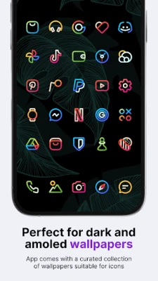 Aline icon pack has 3,280 icons, 20 custom wallpapers, and 5 KWGT widgets, so it’s all you need to personalize your phone how you like it. For the price of one app, you get content from three different apps. Aline icons are linear, and the color palette is vibrant, so it goes well with dark wallpapers. *To apply KWGT widgets, you need KWGT and KWGT Pro apps.