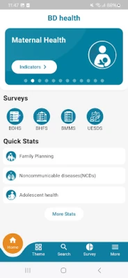 The Bd health app was developed by the Apps and Analytics team of the Maternal and Child Health Division, icddr,b, and funded by the Research for Decision Makers (RDM) initiative of the United States Agency for International Development (USAID). This app provides researchers with free and easy access to publicly available survey information, statistics, and health indicators from Bangladesh.