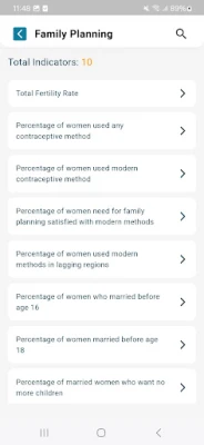 These surveys cover various health topics, including fertility, family planning, maternal and child health, mortality rates, and nutrition. The app provides access to indicator tables, charts, maps, and trends, as well as links to related publications for further details.