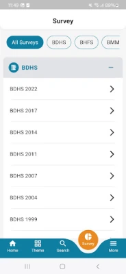 The app includes data from surveys such as: