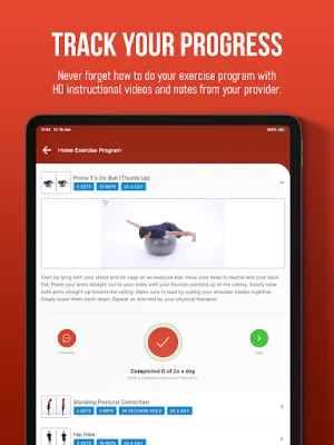With this app, you’ll find HD instructional videos to guide you through your personalized exercise plan. Don't forget to select 'Mark as Complete' after finishing your exercises so you can track your progress!