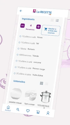 • Présentation des recettes en mode format visuel step by step et mode vidéo