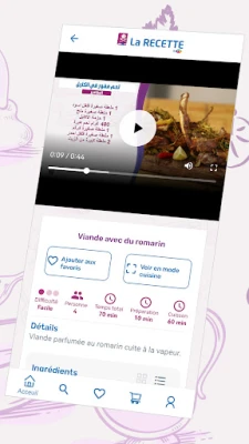 • Présentation des recettes en mode format visuel step by step et mode vidéo