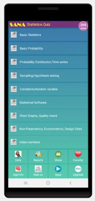 Statistics Quiz apps is an innovative concept from Sana Edutech that provides learning materials on Android app in a fast and nice user-interface.